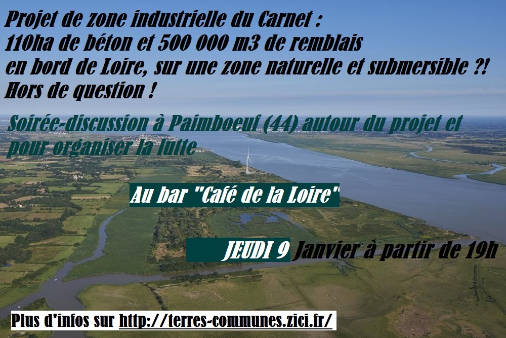 19h30-21h : Présentation du projet du Carnet, de la mobilisation déjà engagée contre ce dernier puis discussion pour échanger sur les impacts du projets et les actions possibles contre le projet à engager