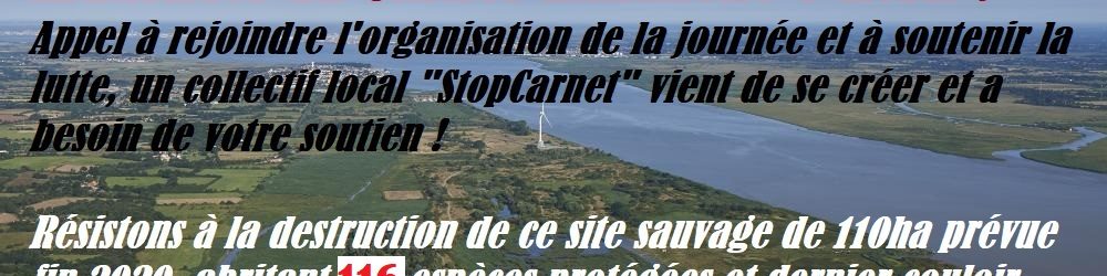 Le blog du collectif StopCarnet : Plus d’infos sur ce projet destructeur de 110 hectares de zone industrielle en bord de Loire, la résistance qui commence contre ce dernier et l’appel à la rejoindre rapidement (premiers travaux prévus fin 2020 !) en cliquant sur les liens ci-dessous : Mobilisation du 5 Avril annulé à cause … Lire la suite de #StopCarnet Le point sur la lutte contre le projet